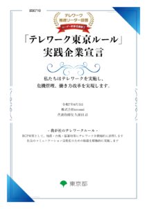 このたび当社は、東京都が普及・推進する「テレワーク東京ルール」に賛同し、実践企業として取り組んでいることをお知らせいたします。