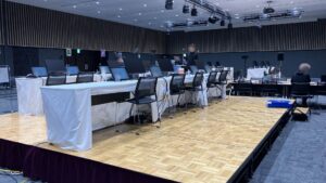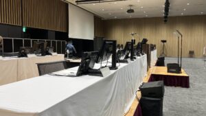 今年も某企業様の株主総会でモニター等の設置と撤去を行いました!