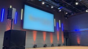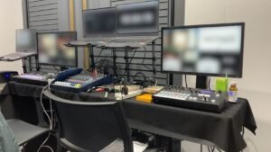 Youtube番組の収録現場で会場内の映像送出を行いました!ホール横の通路に機材を組んでいます!